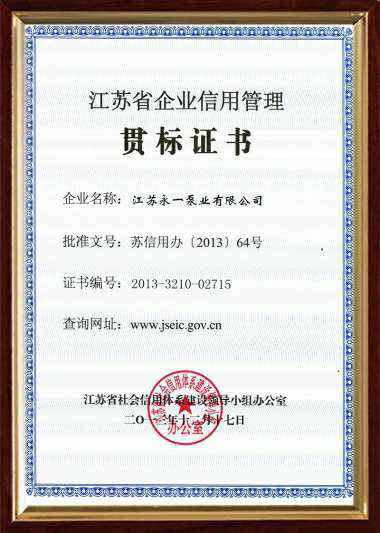 江苏省企业信用管理贯标证书
